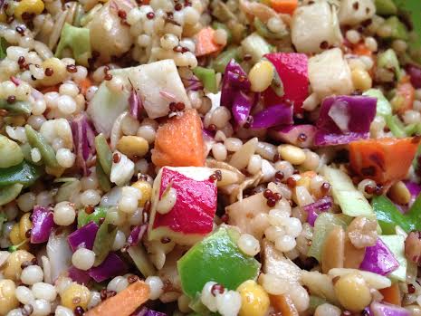 I used Trader Joe’s ingredients because it was convenient (and after all, it is their recipe!), but you could adapt this recipe by using a different grain blend (or entirely Israeli couscous), chopping your own vegetables or using a similar chopped mix and a blend of Italian and Balsamic Vinegar dressing.