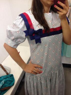 A few weeks ago I hit the jackpot while thrifting. I found this super 80s (though I have no idea which decade it’s actually from) sailor dress that was in perfect condition and just screamed “take me home tonight!” So I did.