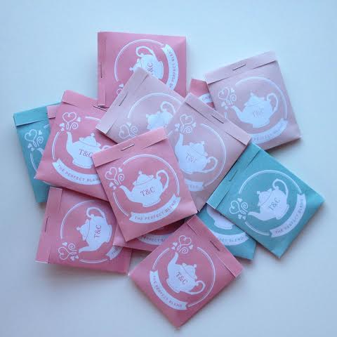 I love how each one turned out differently. I had a blast deciding who would get each one and how I’d display the address within the design. I can’t wait to make more envelopes to use for #reslicedHappyMail – speaking of, have you nominated someone yet?! If not, read all about it here & follow the link to the form. In addition to the invitation and envelope DIY, I also found a lovely [free printable] tea package. I struggled with customizing these, but the team at Botanical Paperworks was amazing and responded quickly over email to help me out. Each package says “T&C – the perfect blend” and “thank you” on the flip side. They printed in 3 different colors – one of which was coral which is the color of our bridesmaids’ dresses! Perfect.