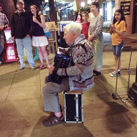 After leaving Nest stocked full of donuts, we passed the most precious sight. This sweet older gentleman was playing the accordion (and very well I might add!) on the corner of Main Street wearing the cutest sweater.