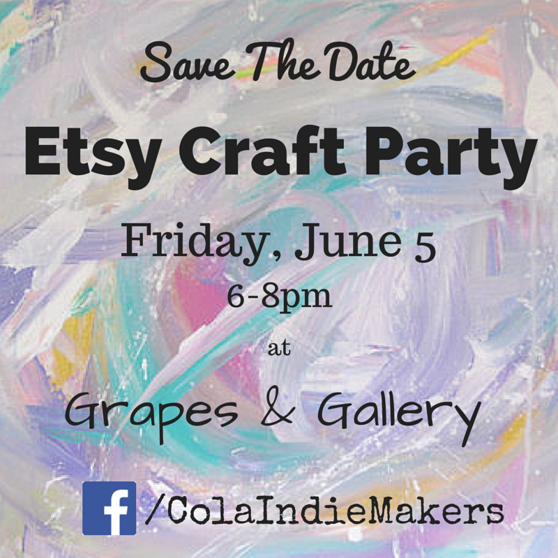 You can read all about what we’ve got planned for the #CraftParty in the Event on Facebook and RSVP on Etsy (here!). In the meantime, keep up with the Cola Indie Makers on Facebook and Instagram for sneak peeks at party prep and giveaway prizes!