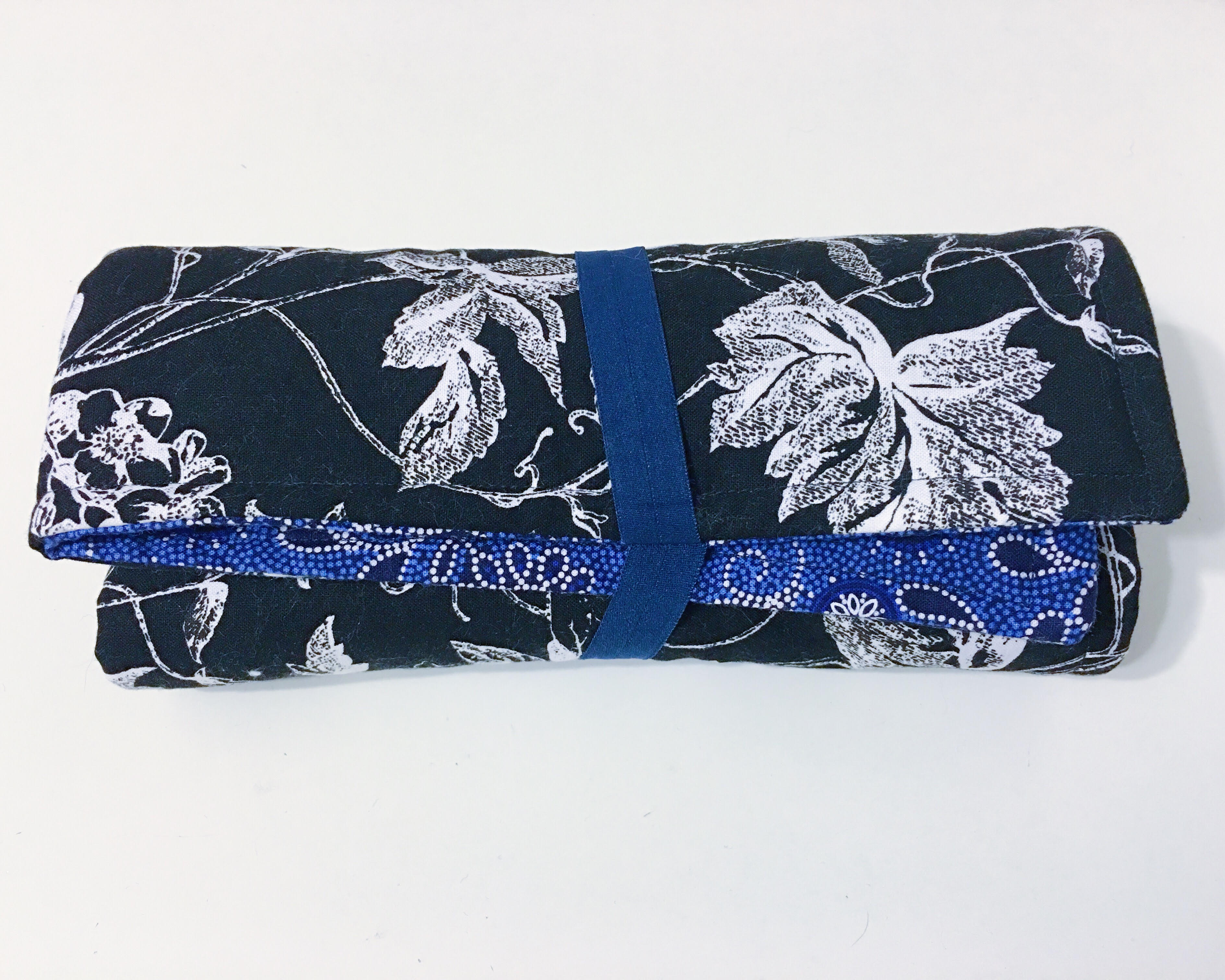 I made this gift last minute for the Hubs’ coworker so I used scrap quilting cotton that a friend’s mom donated to my stash and some double fold elastic I had on hand. I’m always excited when I can make a dent in my stash to create something handy.