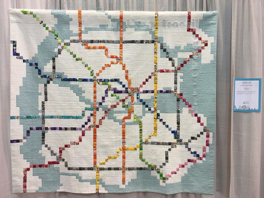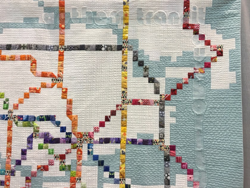 I have found myself seeing quilt patterns in everything I see – road signs, company logos, on the floor (carpet, tiles, rug designs)… I can completely understand staring at a subway map and thinking: “Wouldn’t this make the coolest quilt?!” And it totally did!