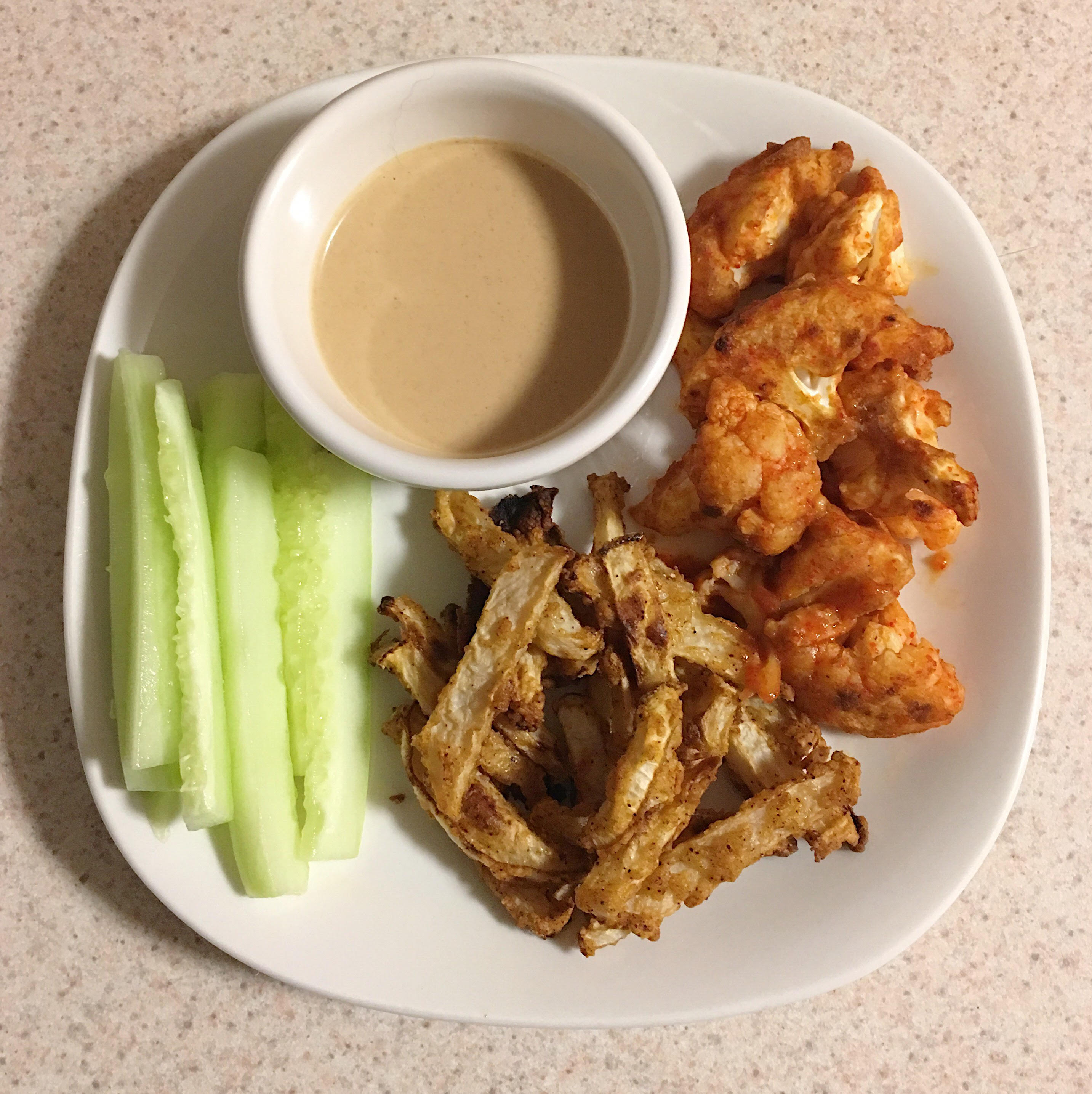 We also made the cauliflower “wings” and root vegetable fries which were also delicious.