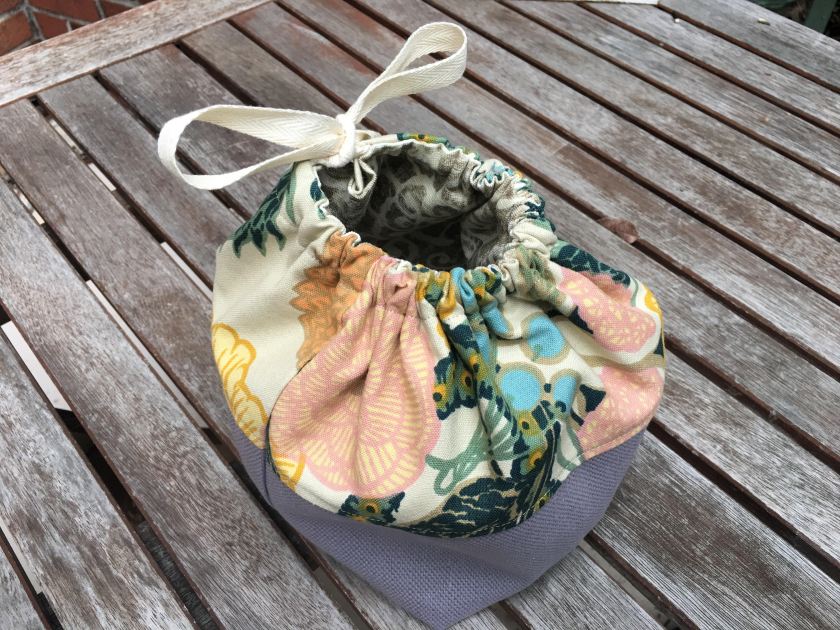 Technically, this is a sock knitting project bag, but the size is super handy. I made one with oilcloth as the interior fabric to use as a wet bag for the baby. The tutorial includes an option for two fabrics on each side of the bag so it’s a great scrap buster.