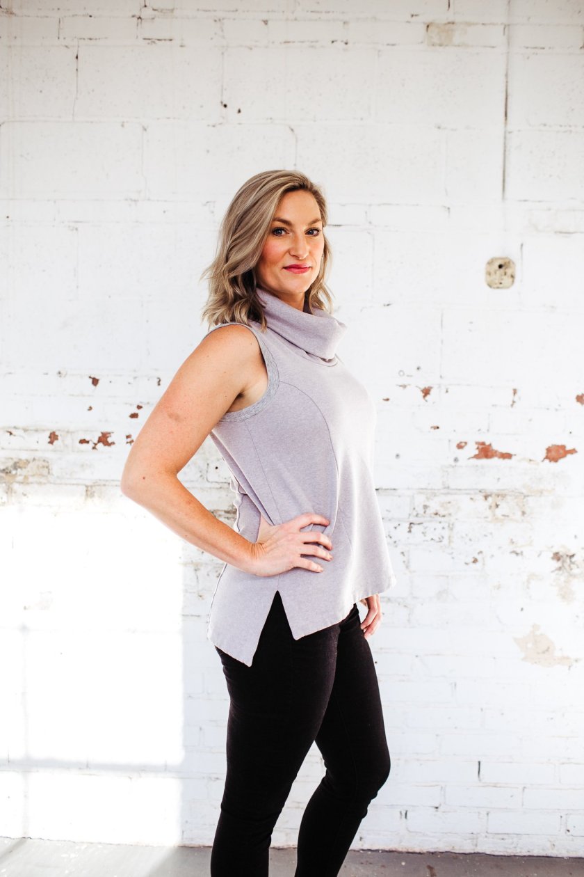 Leslie just released her first pattern and it’s dynamite! The seam lines are so flattering and I love the cowl neck option.