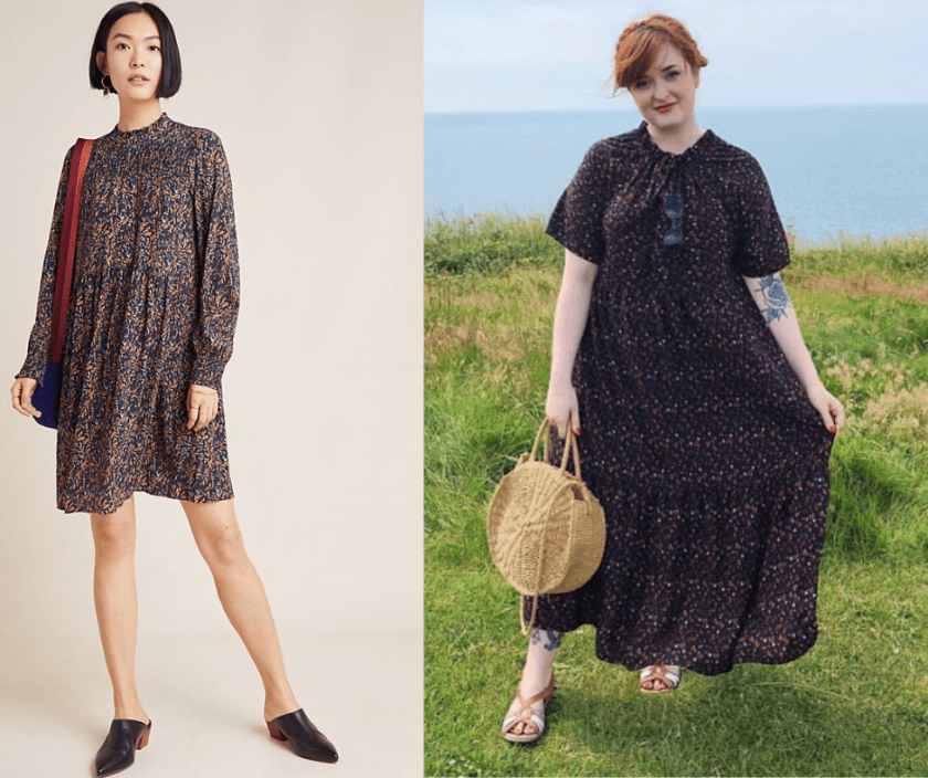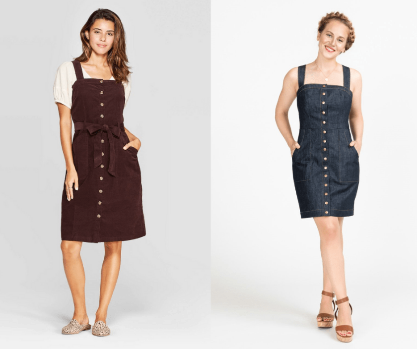 Both dresses offer photos of models wearing the dress as-is as well as over a blouse (like a pinafore). Style it how you like!